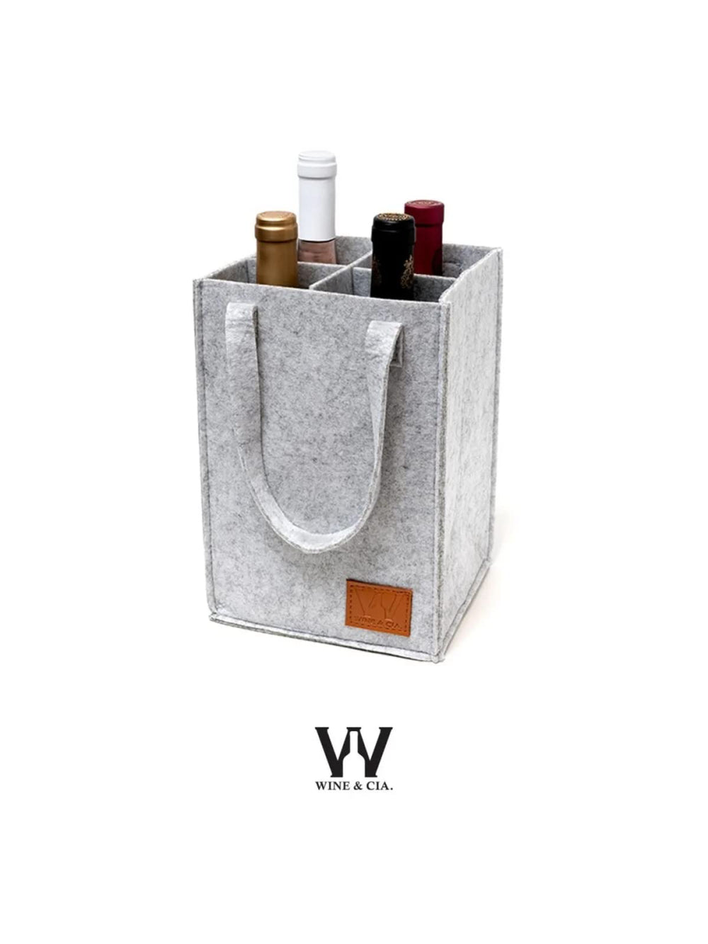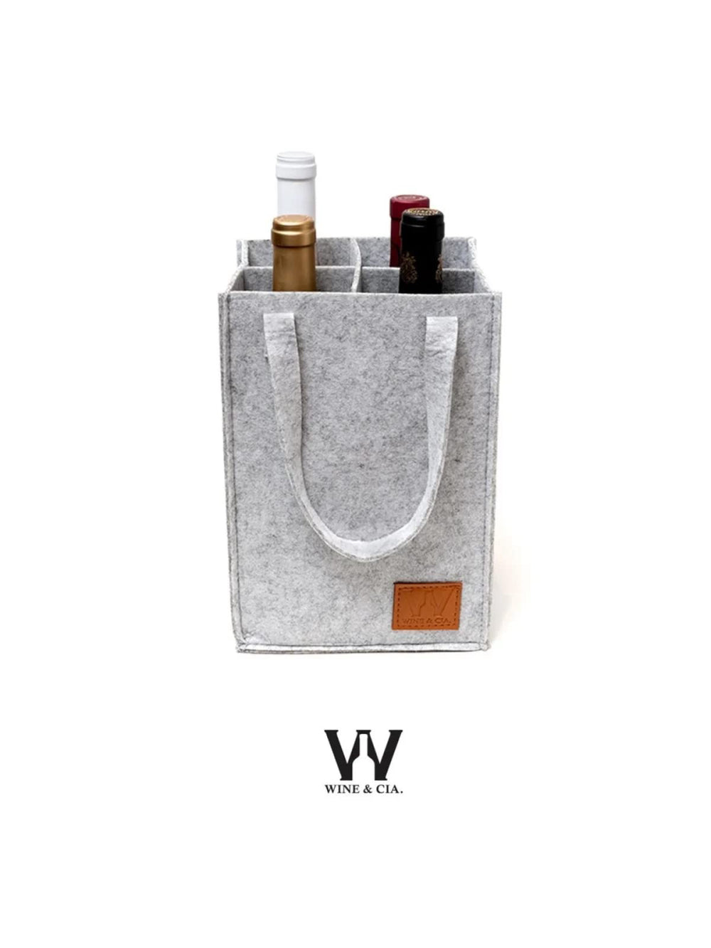 Com as sacolas em feltro da Wine & Cia. você poderá transportar suas garrafas de vinho para onde for com muito mais estilo e segurança.