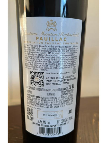 Cada safra de Mouton Rothschild traz em seu rótulo uma obra criada por um artista consagrado. Em 2021, a ilustração “Universe of Mouton” foi assinada pela artista japonesa Chiharu Shiota, simbolizando a conexão invisível entre o vinho, o tempo e o universo.